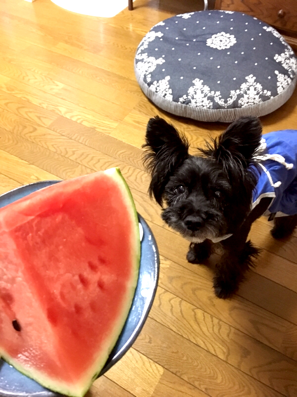 昨日の来客で出したスイカの残りがまだあるのー)^o^(