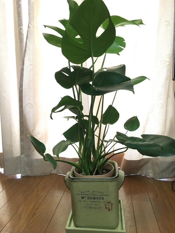 モンステラ 大きくなると葉っぱに切れ込みがはいるってー。そーゆうの全く知らないのでちゃんと育てられるかドキドキ。植物が入ってるポットはプラスチックじゃダメなんだってー。なのでプラスチックじゃないポットを買いましたがまだ植え替えの時期ではないので重ねて入れてます。あとね、お風呂場に置いておくシャンプーとかのボトル類もプラスチックはダメなんだって…。けどさぁキリがないから程々にしないとね…σ(^_^;)