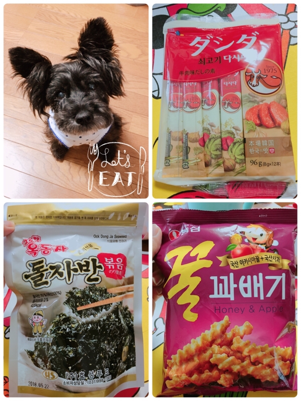 ちょうど切らしていたダシダに韓国のりのふりかけにお気に入りのApple&honeyのスナック菓子。