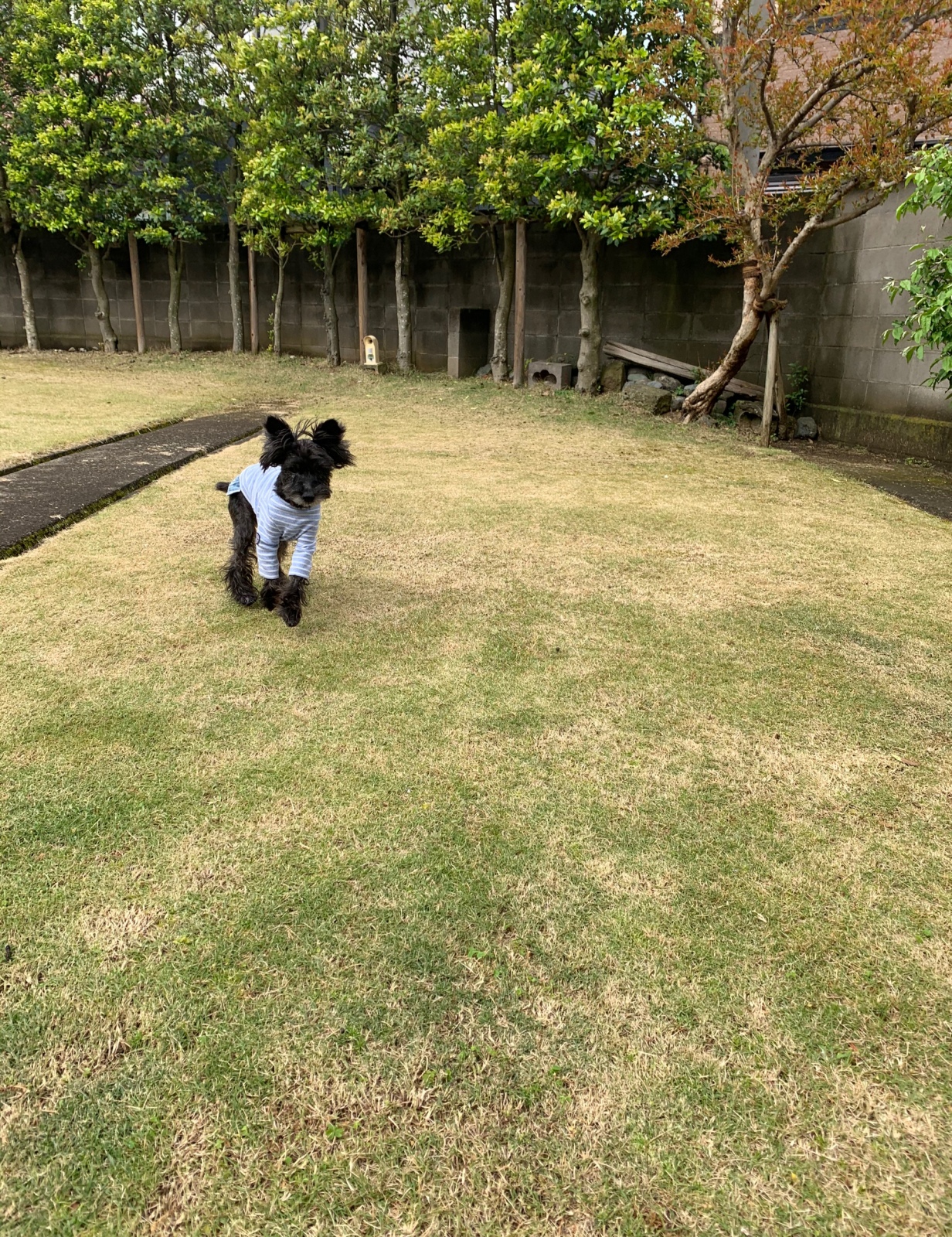 今朝は時間がなかったので境内の芝生に放牧〜。
